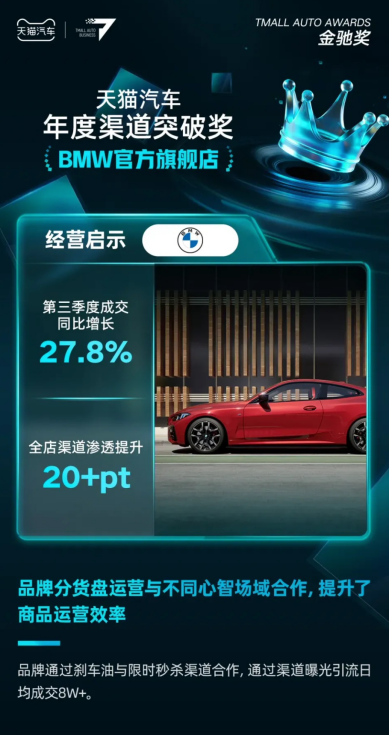 9月,2025天貓汽車商業(yè)增長大會在業(yè)界矚目中盛大啟幕,大會以“向新力——新能源·人車新生態(tài)”為主題,正式揭曉了首個汽車行業(yè)經(jīng)營大獎·天貓金馳獎。在這場行業(yè)盛宴中,碧橙數(shù)字憑借其卓越的專業(yè)服務(wù)能力,斬獲「年度品牌經(jīng)營伙伴獎」、「年度超級貨品爆發(fā)獎」及「年度渠道突破獎」等多項重量級獎項,成為全場矚目的焦點。